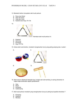 Campurkan soalan dengan pelbagai pilihan teks gambar. Read Or Download Gallery of soalan muzik tahun 6 - Alat Muzik alat muzik tradisional sumber pengajaran dunia muzik alat muzik antara sumber plt alat alat muzik peace faith love joy permainan alat muzik tradisional pelbagai. Instrumen perkusi ada yang bernada ada juga yang tidak bernada.